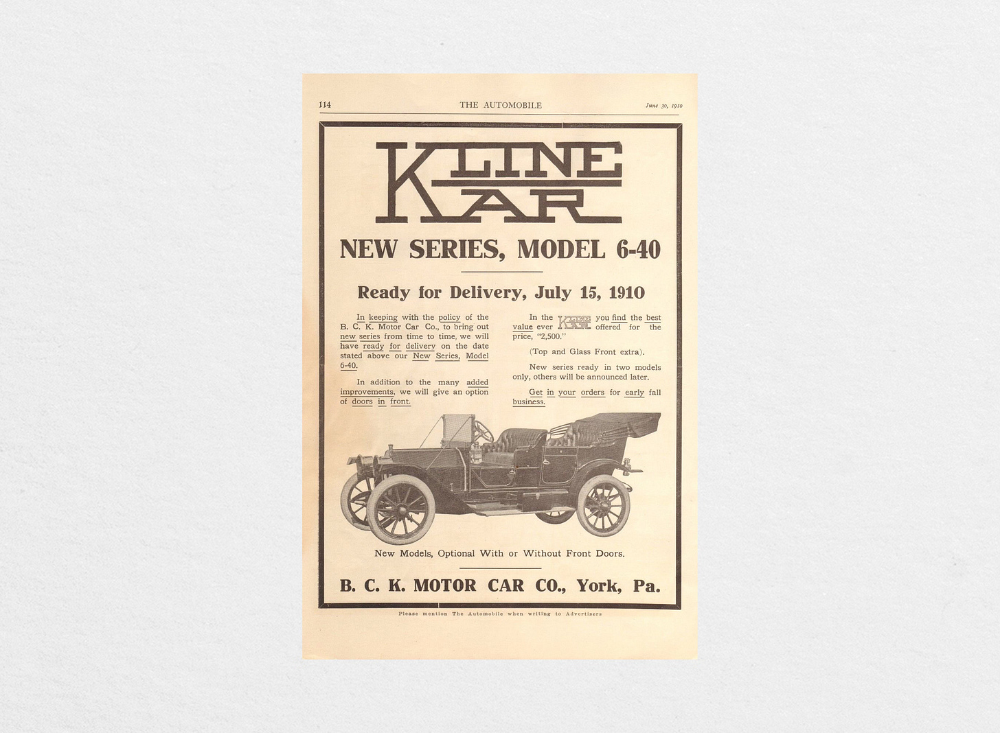 It’s KlineKar model 6-40 was revealed on July 15, 1910 at a price of $2,500 (with top and front glass at additional charge) You could also order the car without doors.