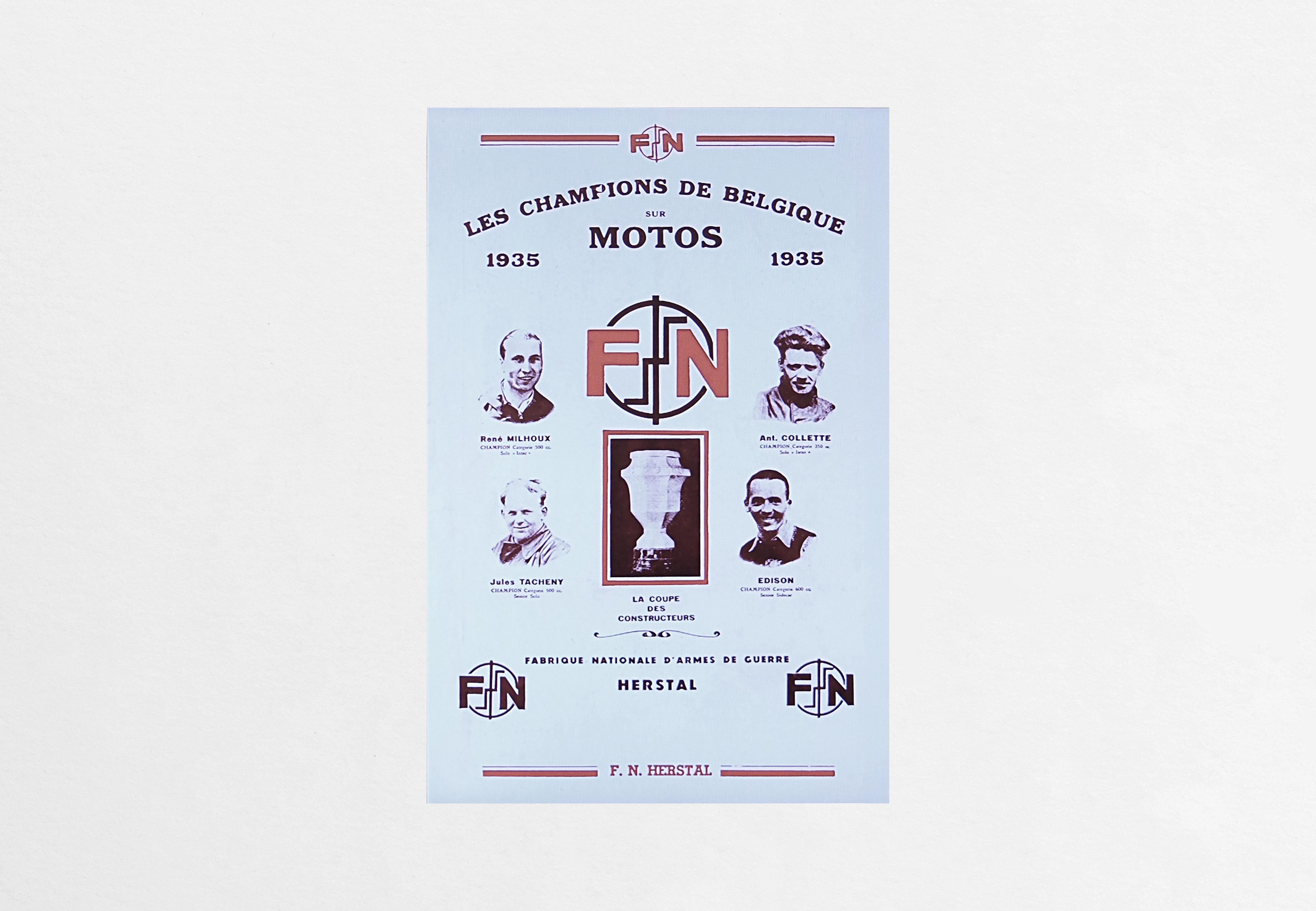 Known as the ‘Demoiselles de Herstal’ (young ladies of Herstal), together with Gilet and Sarolèa, FN motorcycles were among the winners of numerous competitions in Belgium, Europe and further afield in all disciplines, and in doing so beat 81 world speed records