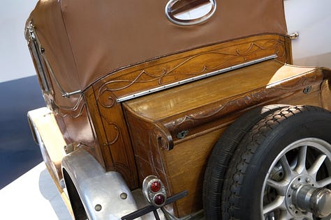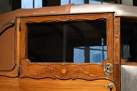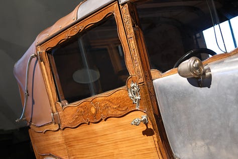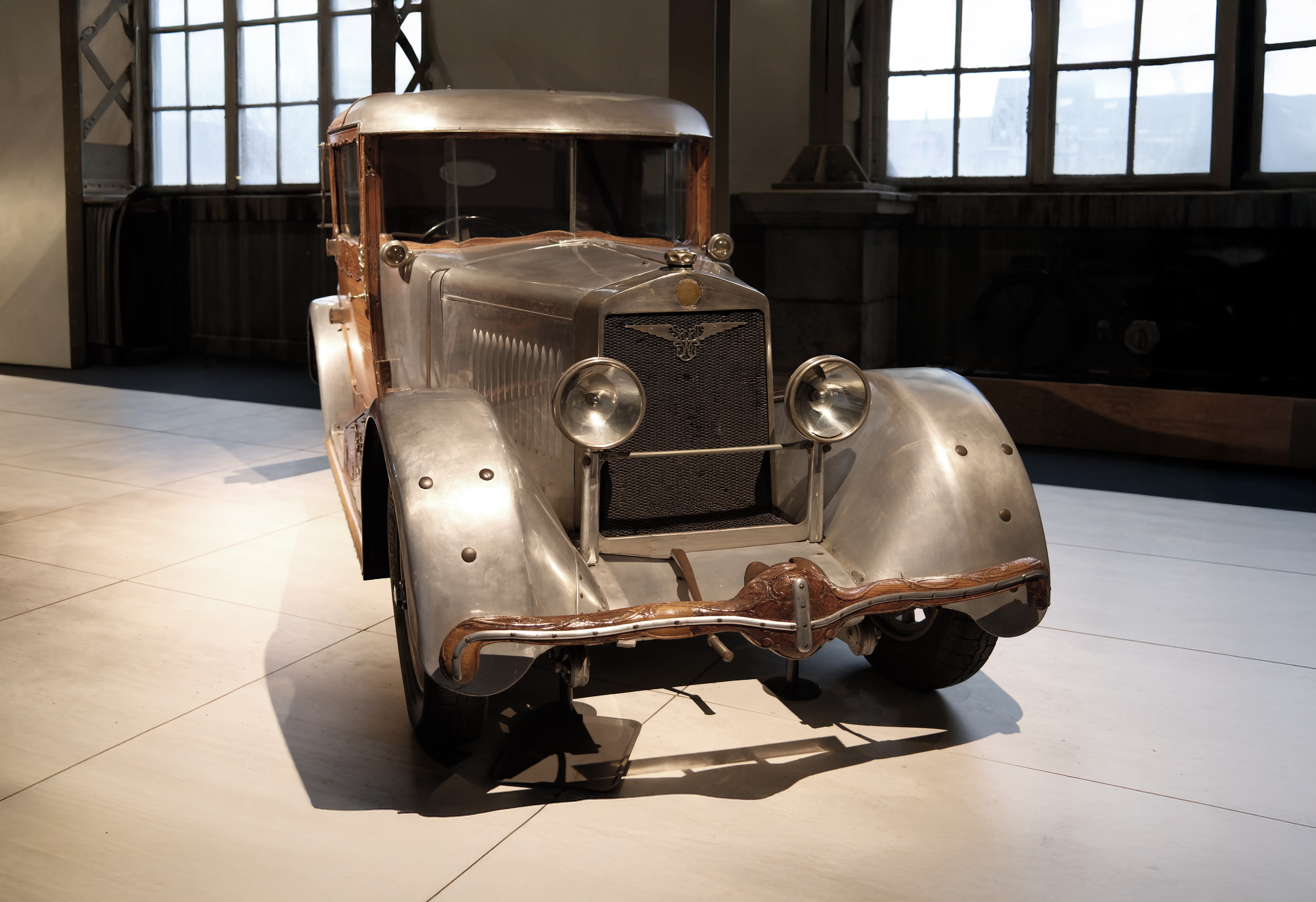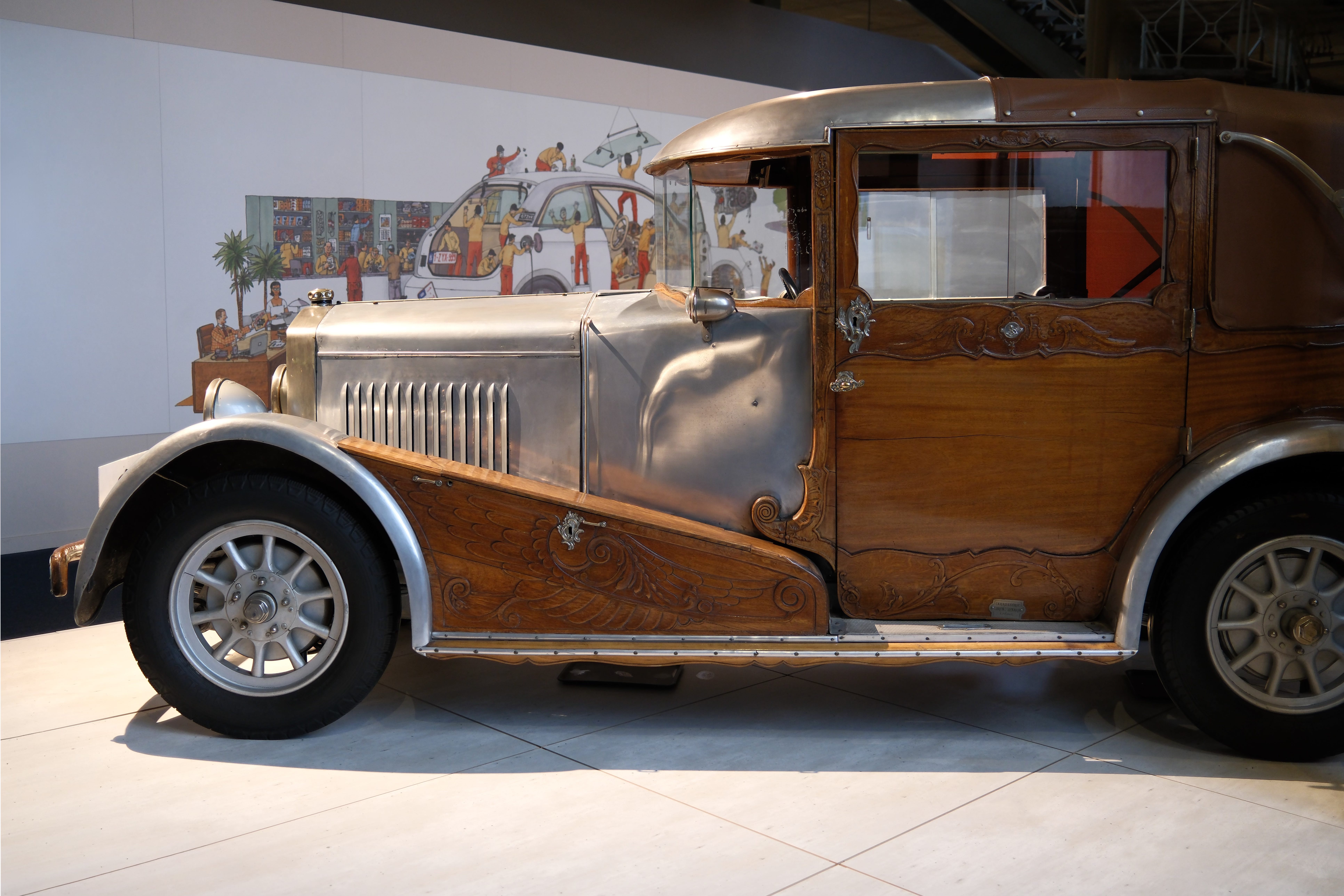 Both internally and externally richly decorated, with even some components silver plated. This car was built for a Shah on special order, but was never paid and as such was never delivered. The car was finally acquired by a wealthy person from Liège. (source: Autoworld).