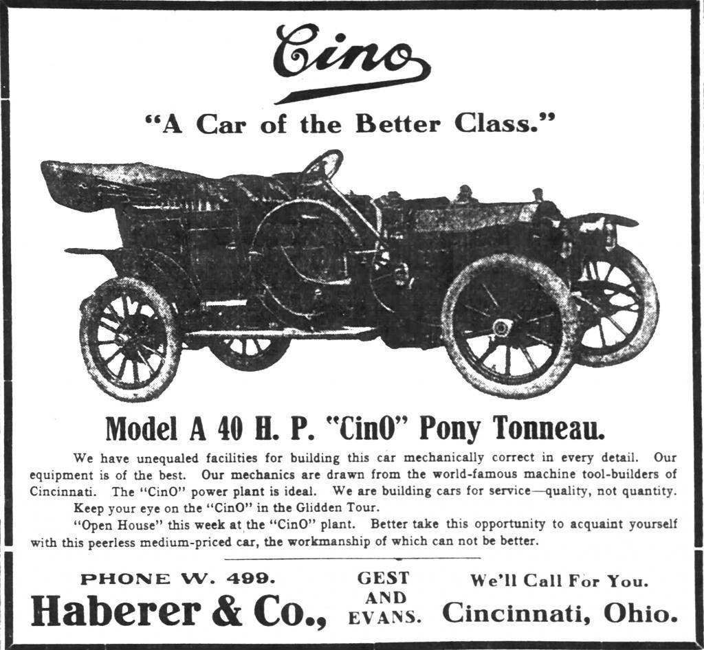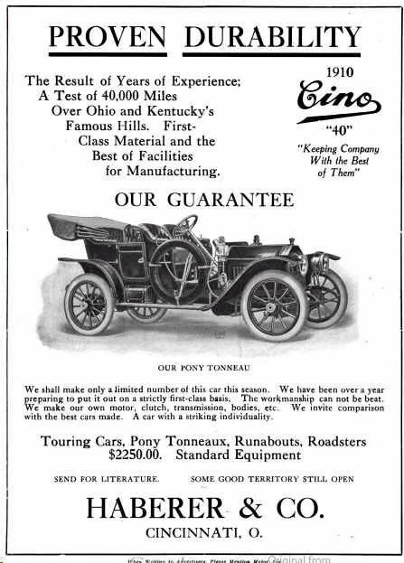 1910 Haberer & Co. ad for the Cino model 40 Pony Tonneau.