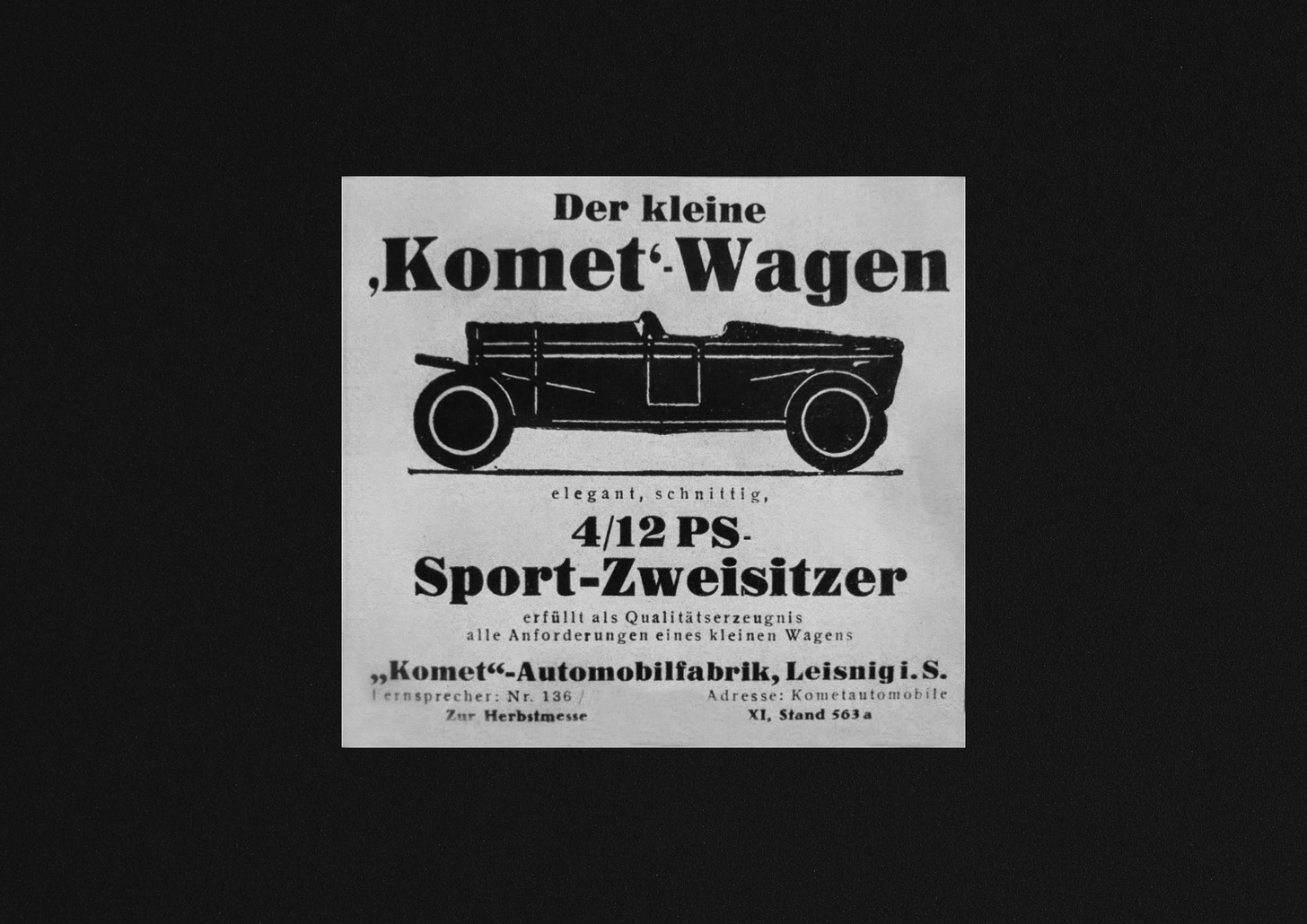 After 1924 the production was taken over by C. Kenter Automobilbau AG (Berlin/Leisnig) who used the former Komet works.