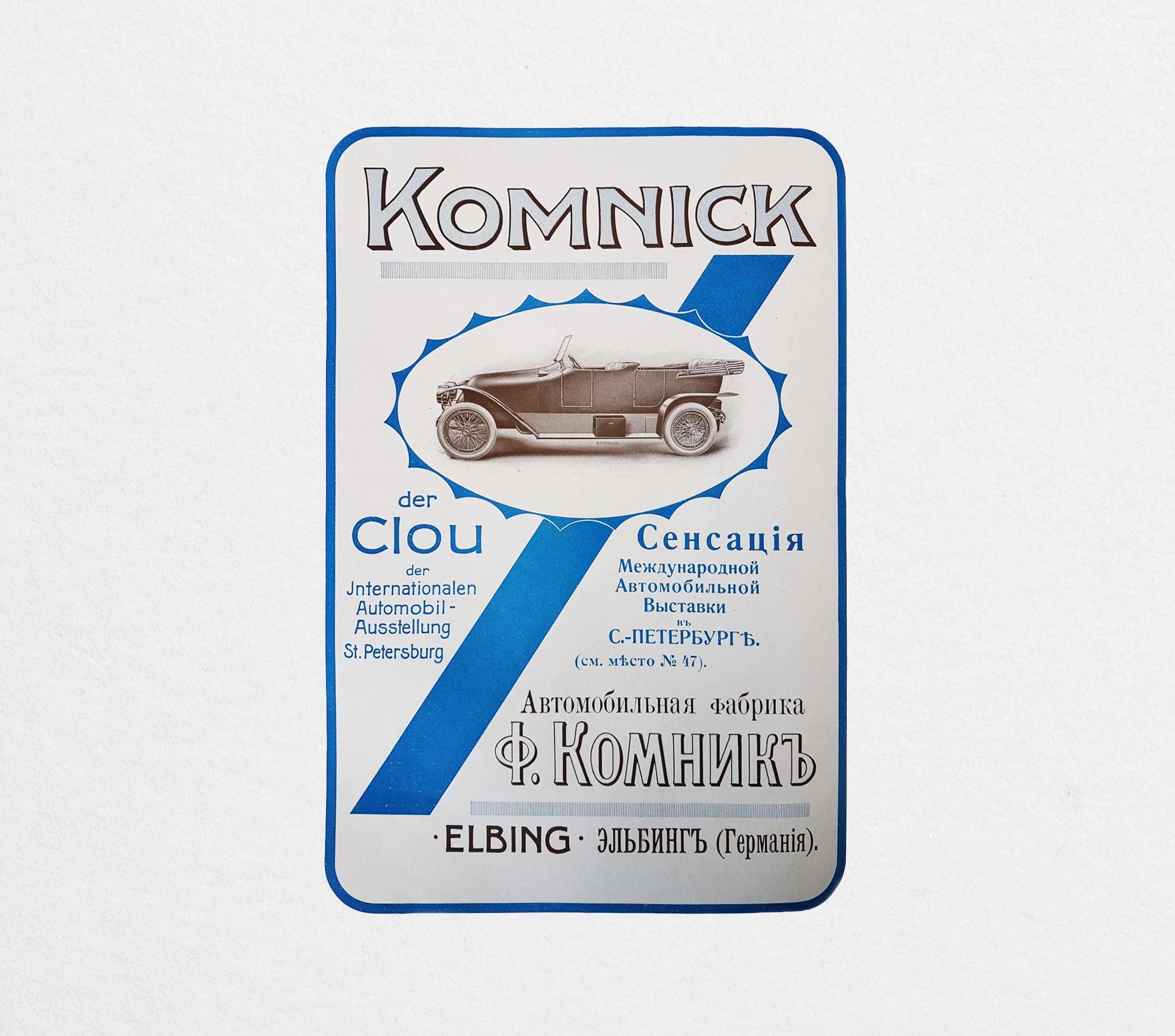 The factory was located in Elbing, East Prussia, so they sold their cars also to Russia, Poland and other eastern countries. The first cars had the radiator behind the engine. The Komnick was famous for his durability. But it was never reached mass production, so they had to close in 1927.