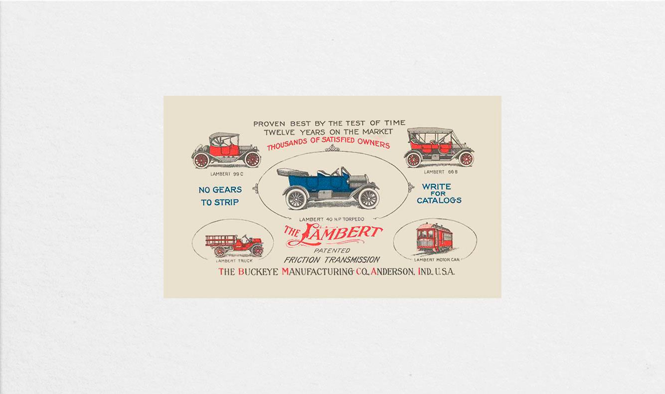 He developed the friction transmission that would be a feature on all of his cars. He made an unsuccessful attempt to buy out a model call the Buckeye in 1895. Lambert’s first automobile marketing success was a model called the Union which was released in 1902. In 1906, he produced the first Lambert. With this line Lambert established himself as one of the more successful automobile manufacturers of the era.