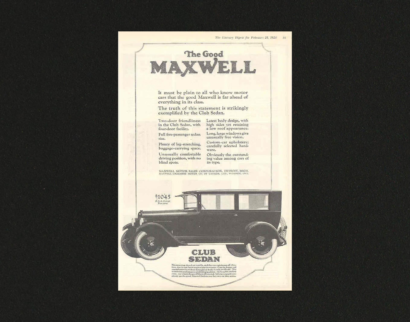 The Maxwell was a brand of automobiles manufactured in the United States of America from about 1903 to 1925.