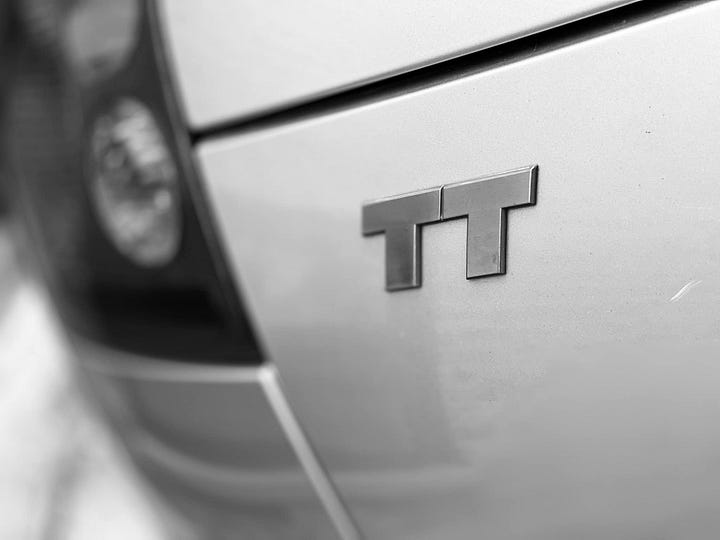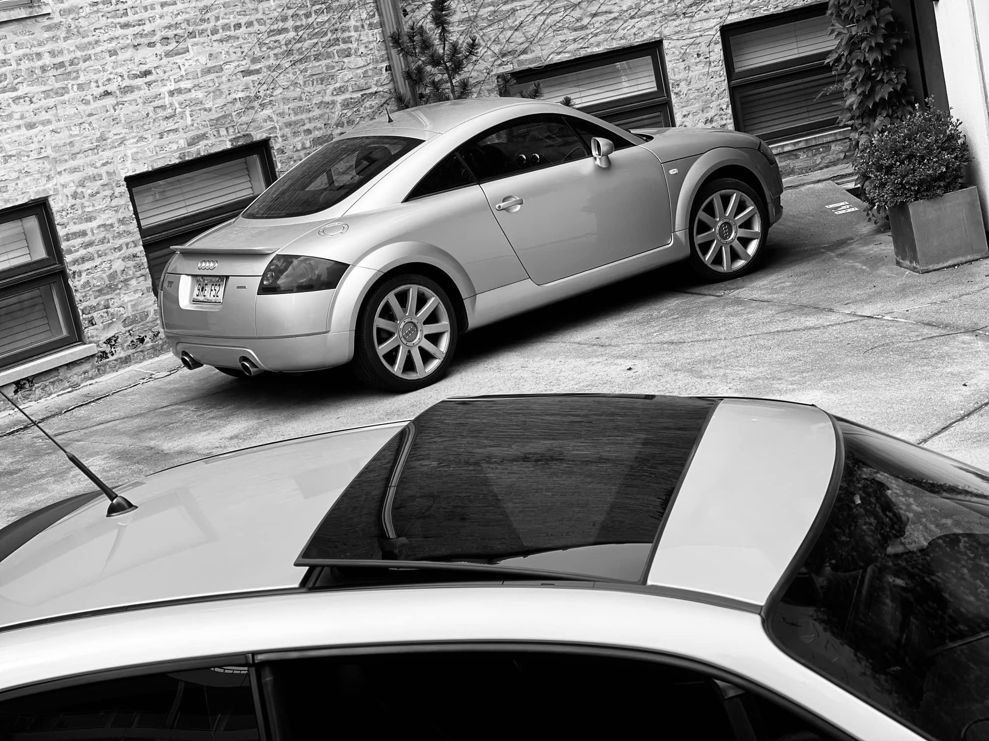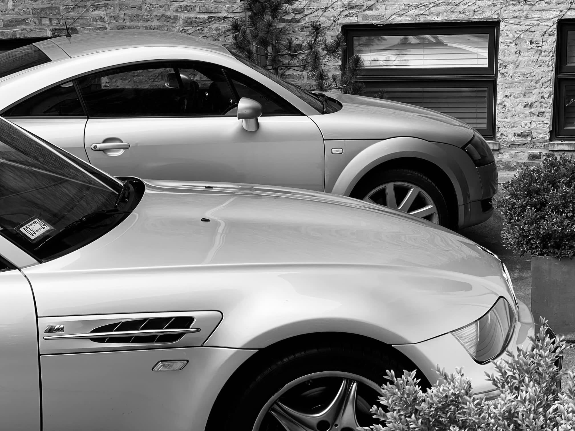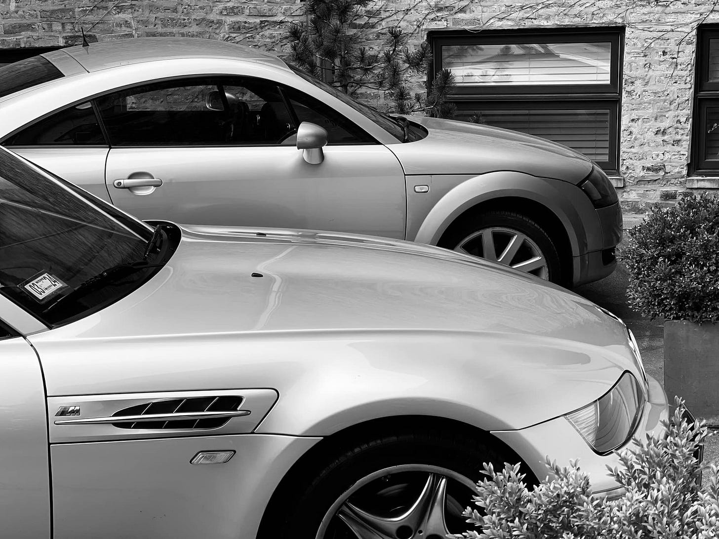Here is a 2001 BMW M coupe (lovingly known as the “Clownshoe”) and a 2001 Audi TT 225 Quattro Coupe, both with manual transmission.