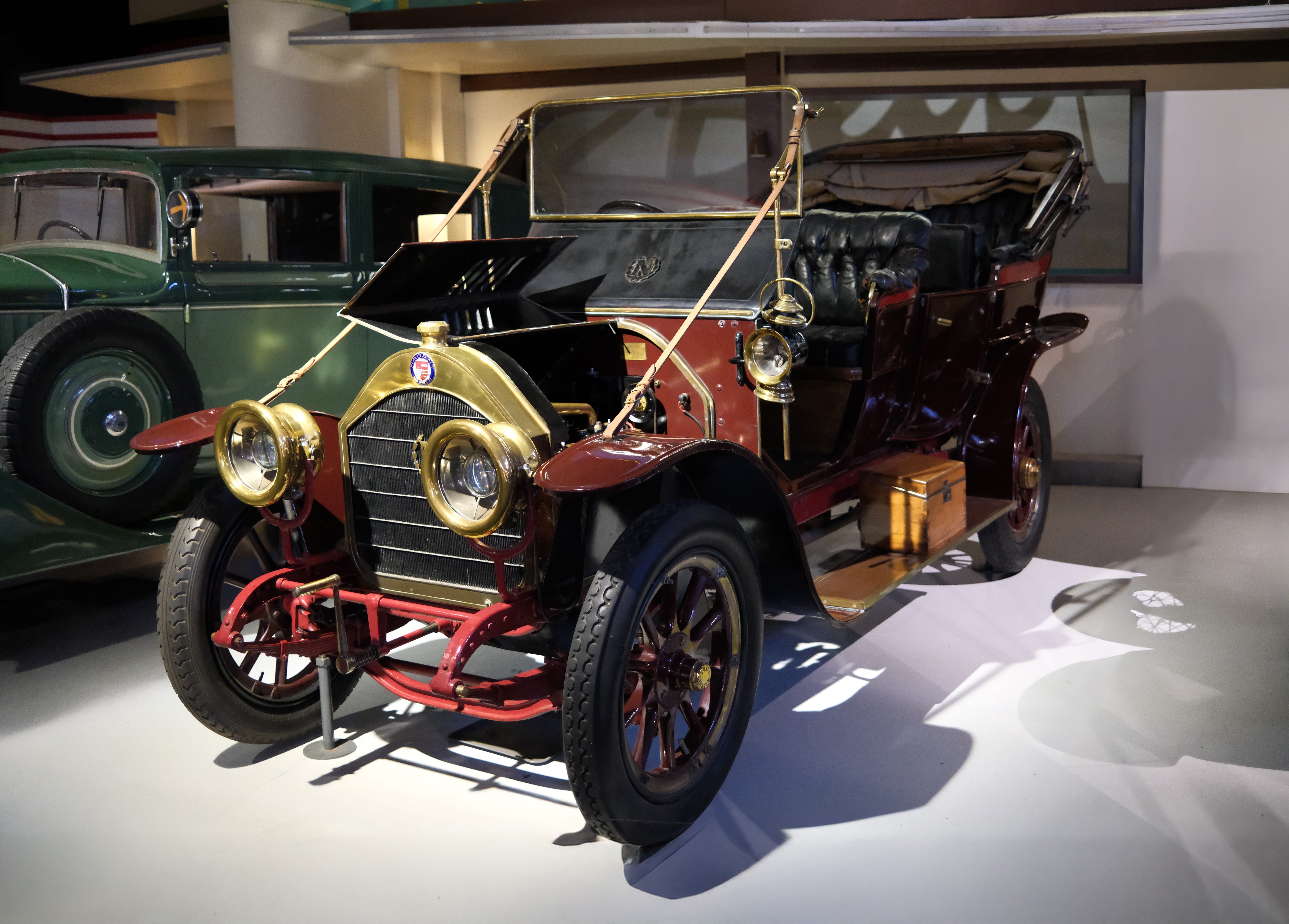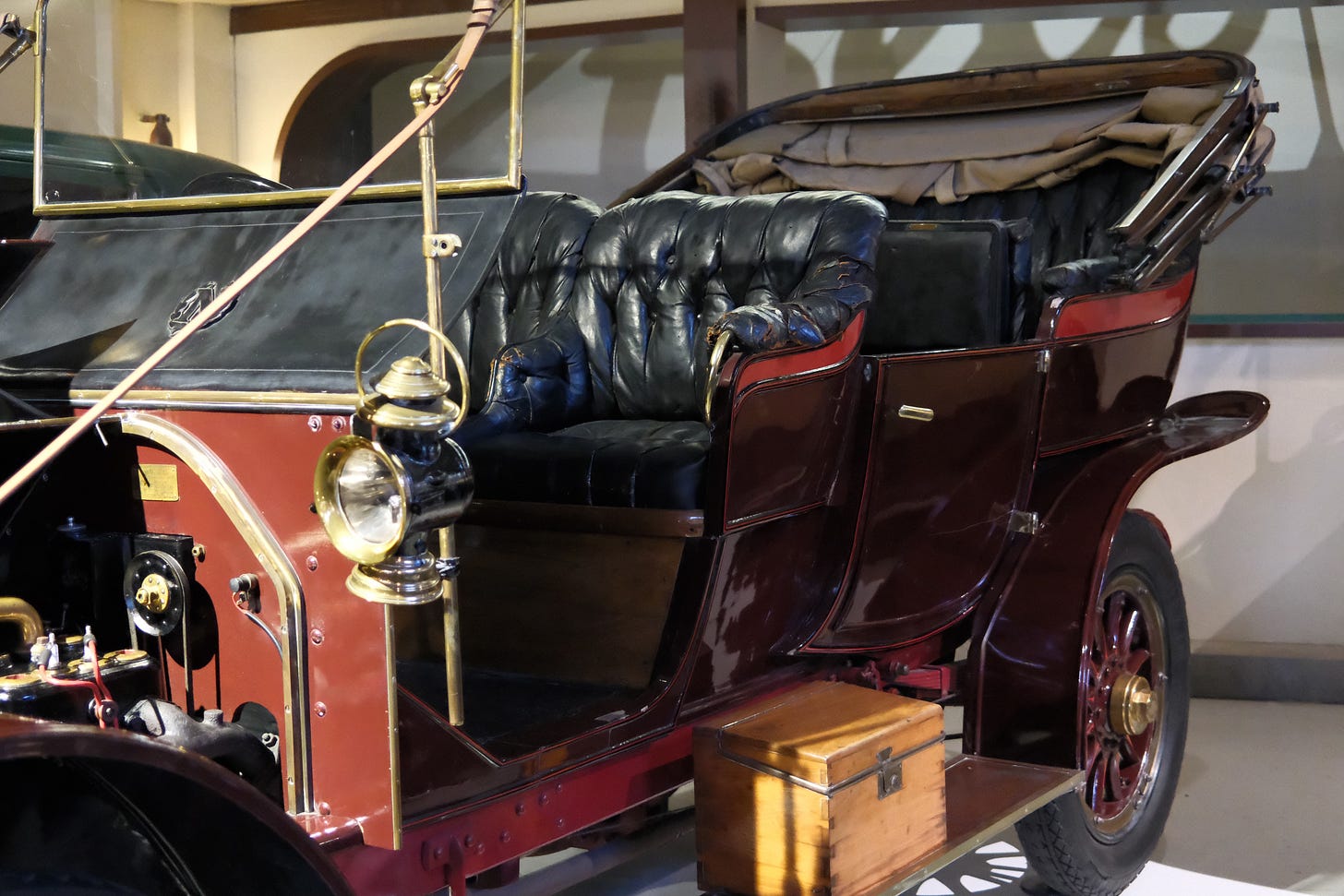 This phaeton (currently at Autoworld in Brussels, Belgium) is distinguished by the inclusion of two folding seats, increasing total seating capacity to seven. The body design is derived from the Roi-des-Belges style, reportedly conceived at the request of King Leopold II. Seeking the comfort of club chairs similar to those in his private salon, the king commissioned the Parisian coachbuilder Rothschild to develop this configuration.