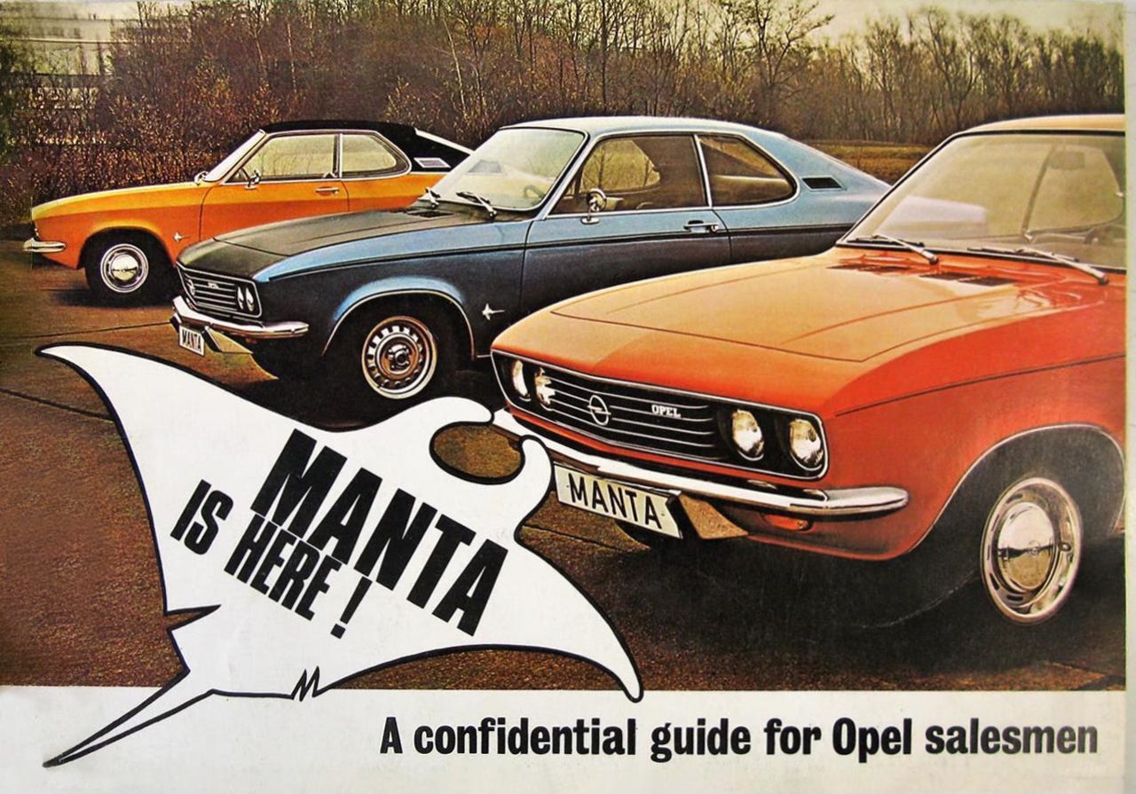 It was built to compete with the Ford Capri in Europe, which had been very successful as a stylish, affordable sports coupe and named after the manta ray, fitting Opel’s tradition of naming cars after marine life (Kadett, Rekord, Admiral, Commodore).