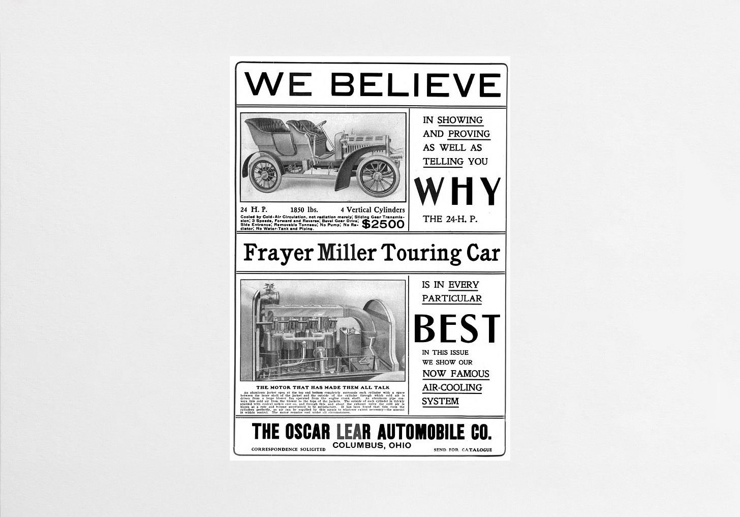 Because of its robust engine design and reliability focus, Frayer-Miller was often advertised as “The Car of Endurance.”