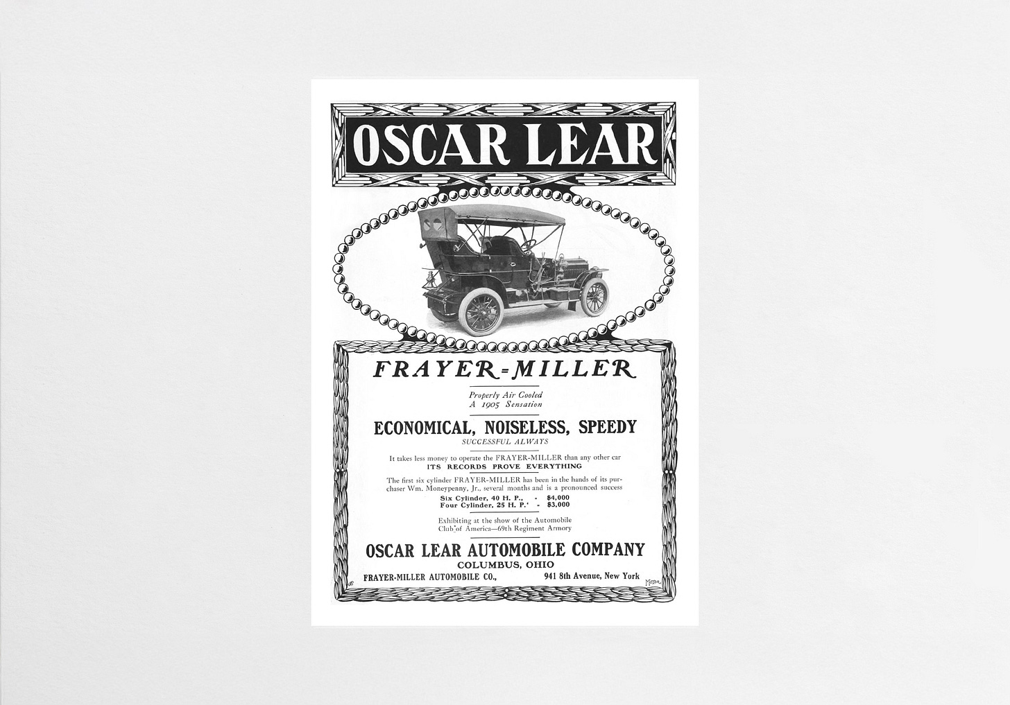 The Oscar Lear company was founded in 1904 in Columbus, Ohio by three men: Oscar S. Lear, Lee A. Frayer, and William J. Miller.