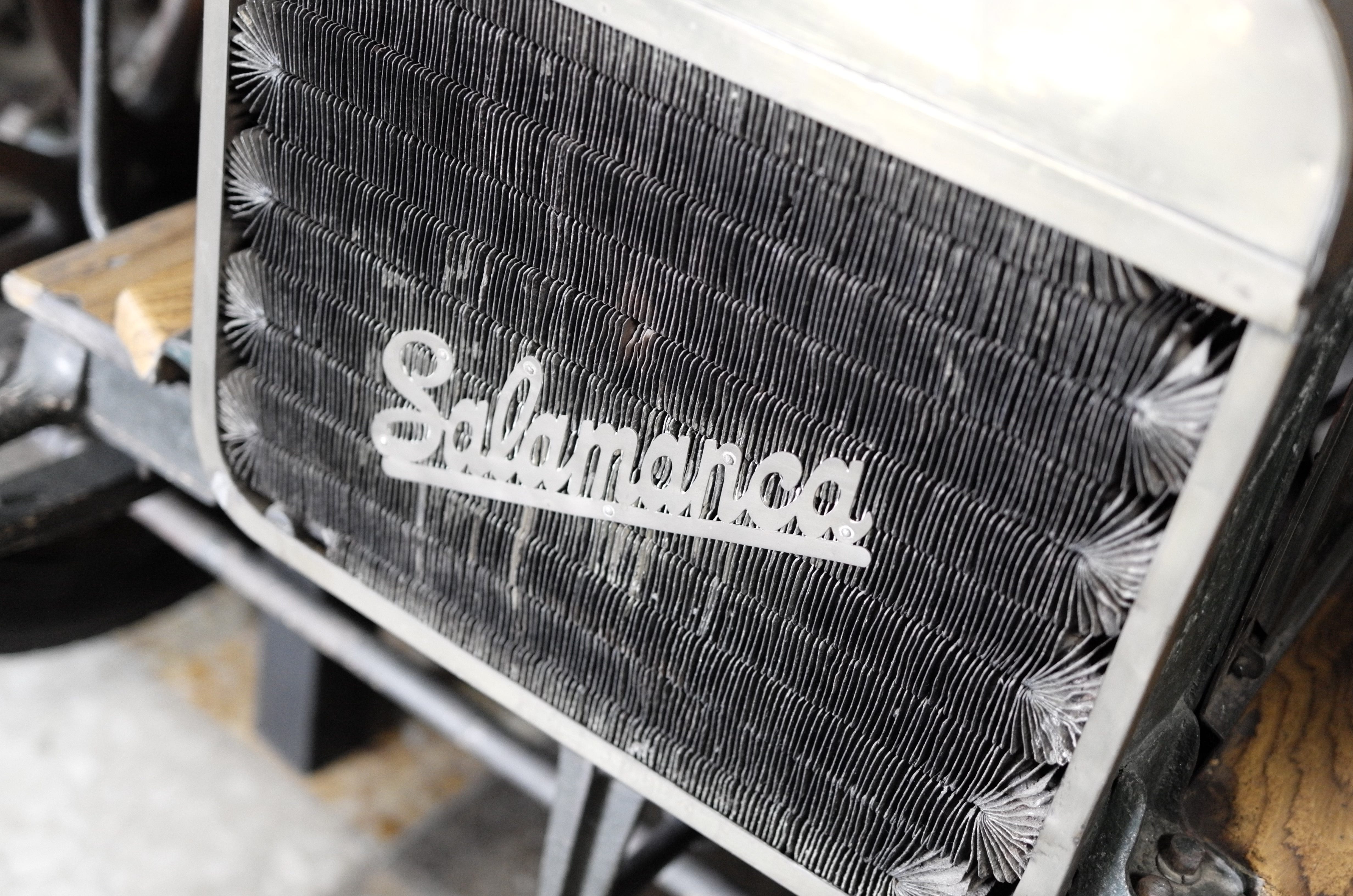 Unlike most cars of the period, this Salamanca featured a chassis made entirely of wood, as were its fenders. The front axle was forged steel, and the wheel bearings were bronze, not ball bearings—a reflection of early automotive simplicity and durability. The gas pedal could be operated both by foot and by hand, with a clever locking mechanism that required the use of the clutch to disengage it. Even at this early stage, attention to driver comfort and control was evident.