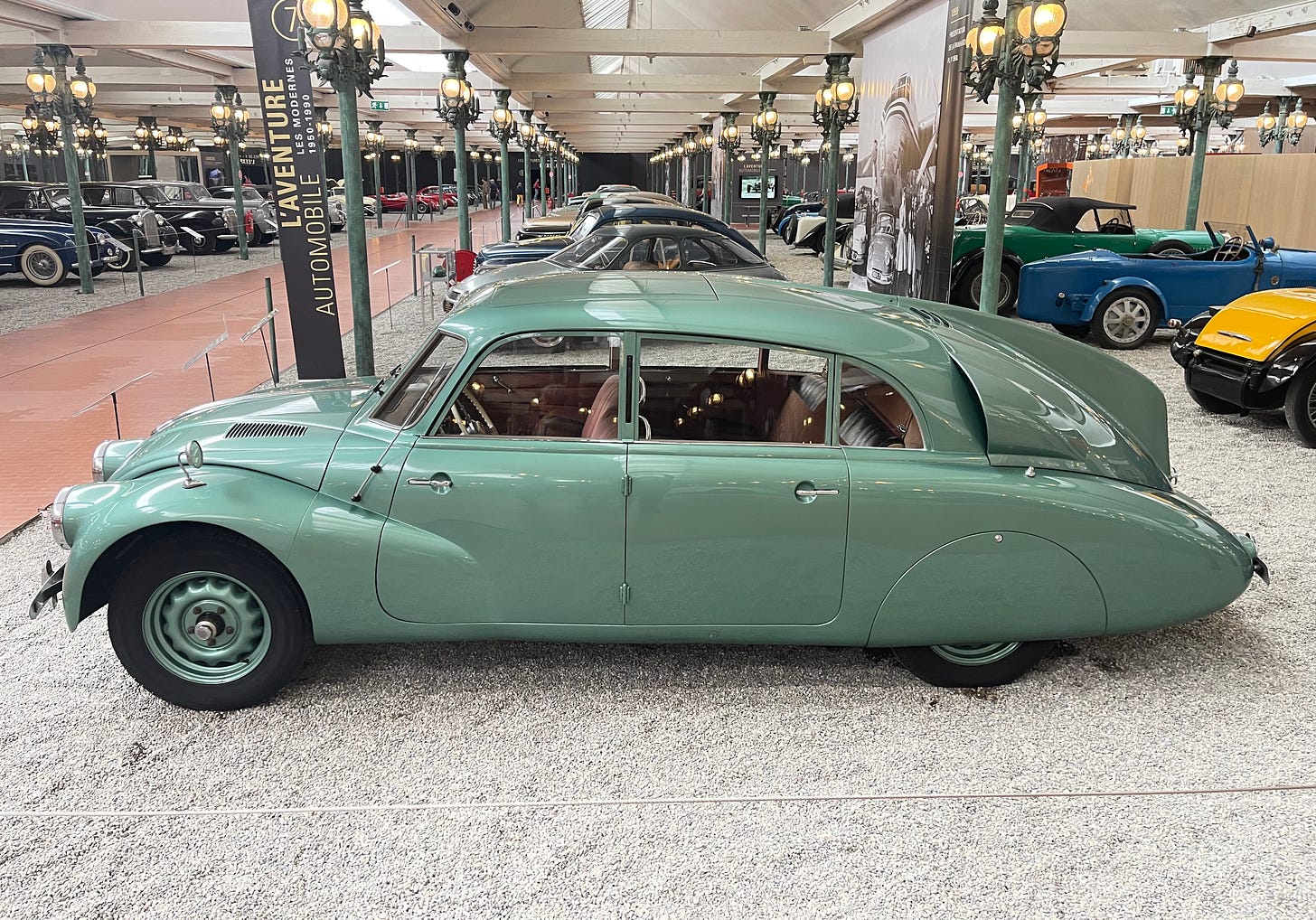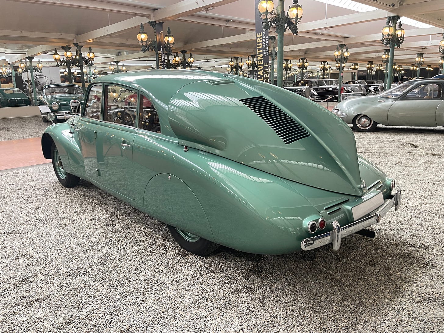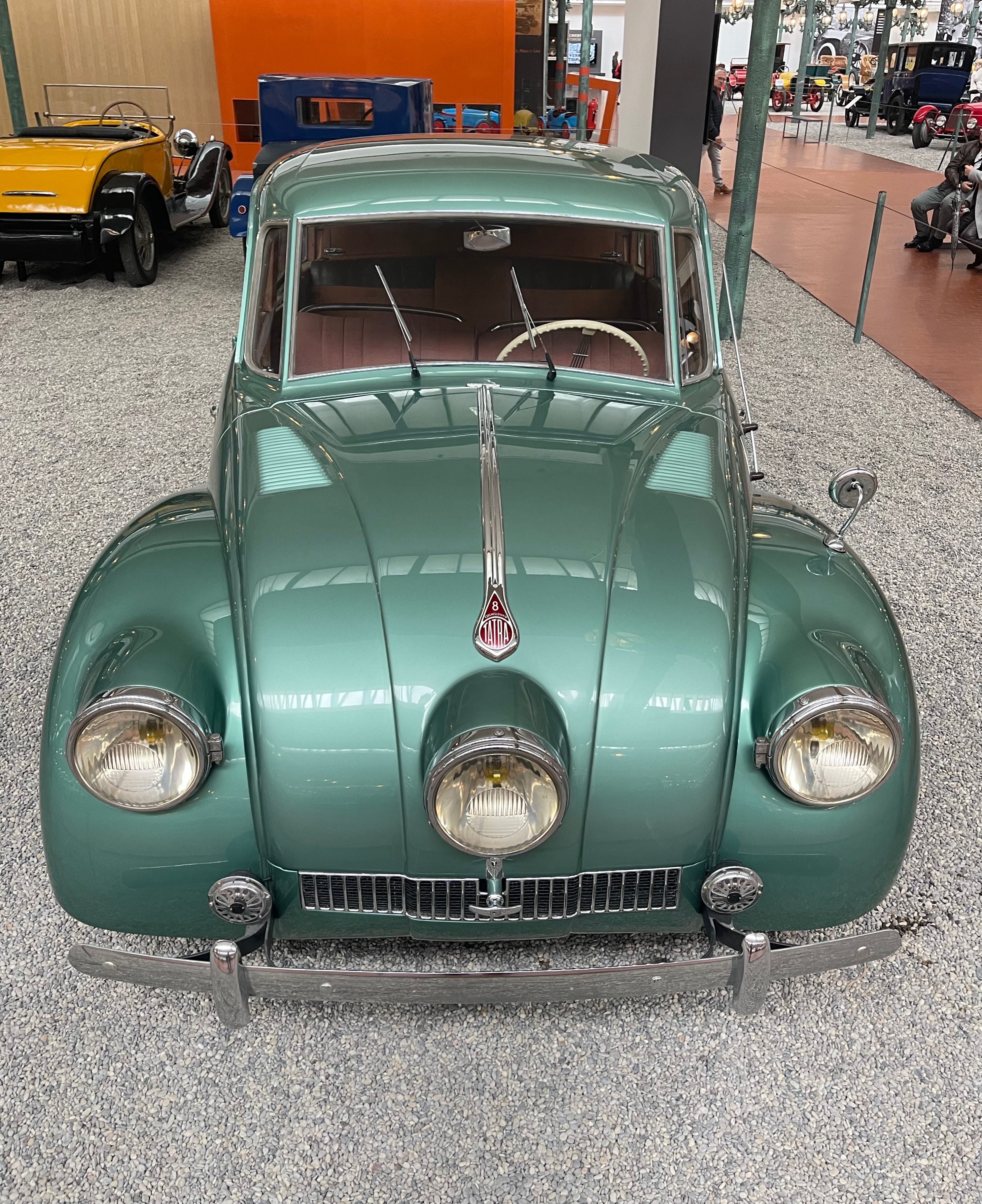 The V-type 8-cylinder air-cooled engine is mounted at the rear of the car, thereby freeing up an exceptional amount of space for the passenger compartment. This example is currently at Musée National De L’automobile in Mulhouse, France.