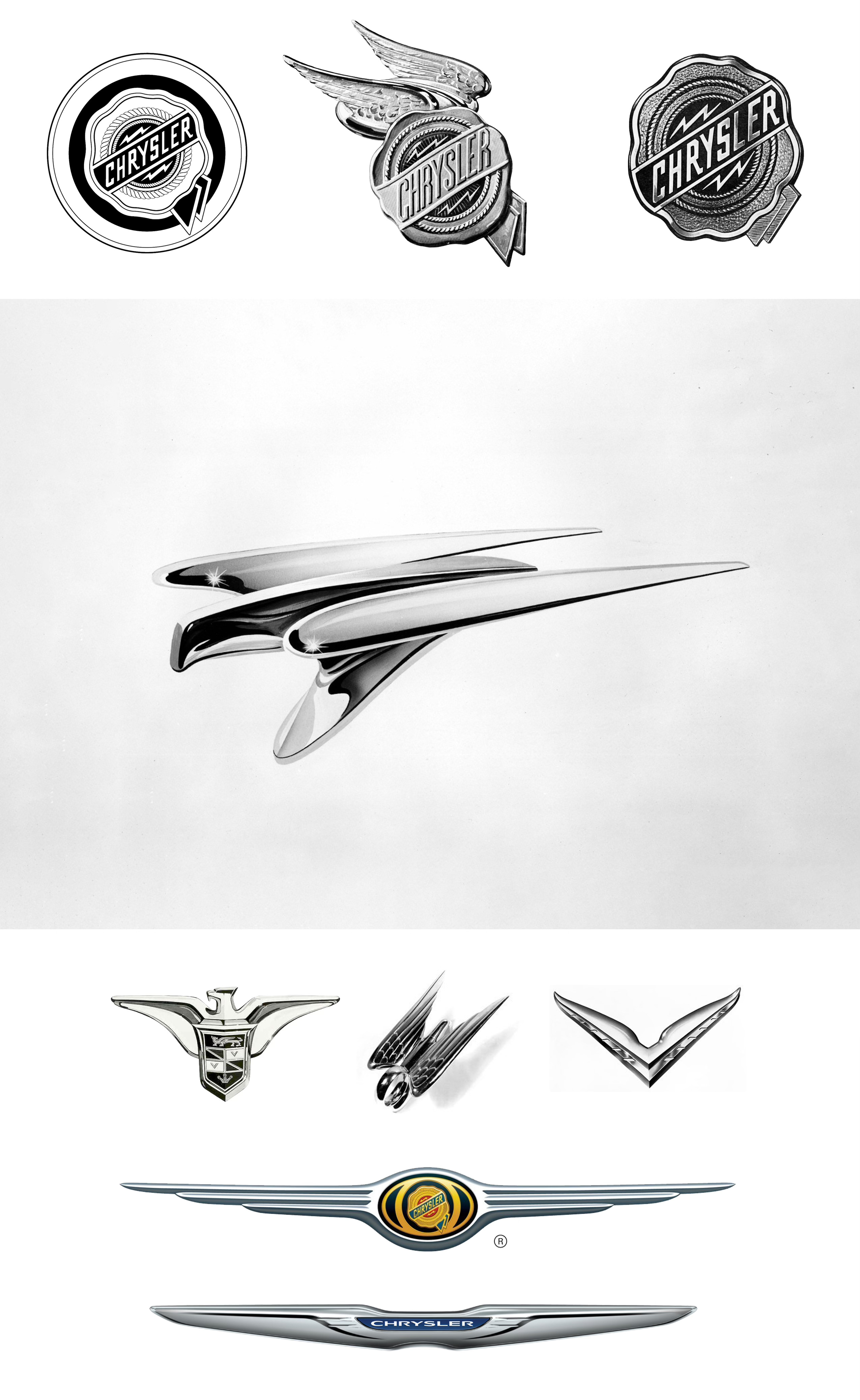 Chrysler has had many variations of their logo and emblem, but below are just a handful of examples that the new logo above replaces.